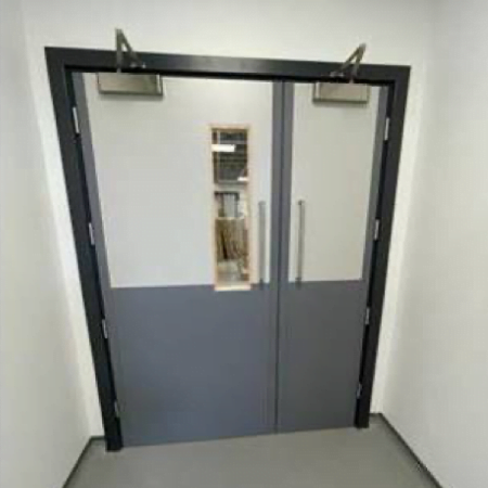Before being carefully conveyed to site, the hospital doors were secured in pre-primed, hardwood and softwood frames using class 13 satin stainless steel hinges, complete with architraves to facilitate installation.