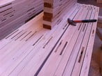 The images show the doors going through the various production processes and the M & T construction as well as some images of the final product with its primed coating.