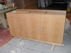 We were able to manufacture the doors and then furthermore we were able to actually provide them with a matching reception counter in American White Oak. The counter features a bin facility and inbuilt shelving behind the two opening doors as can be seen within the pictures.